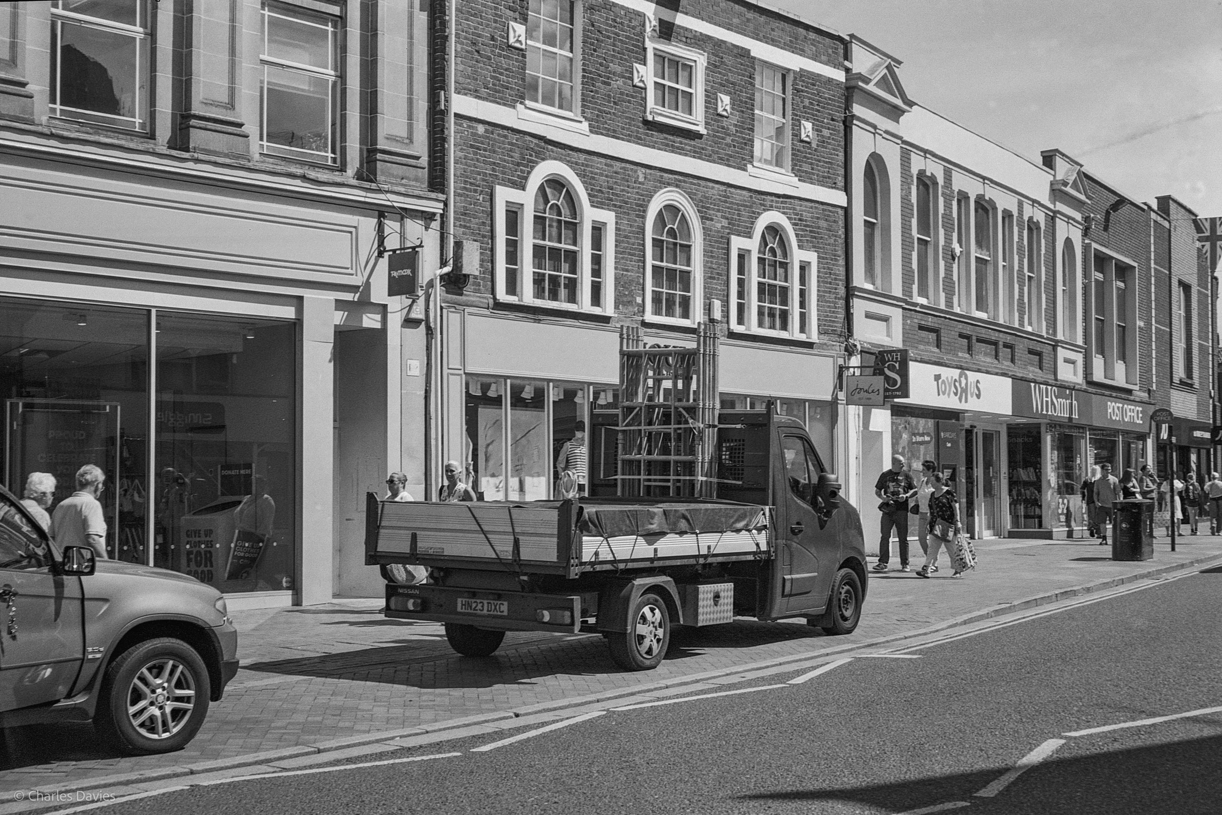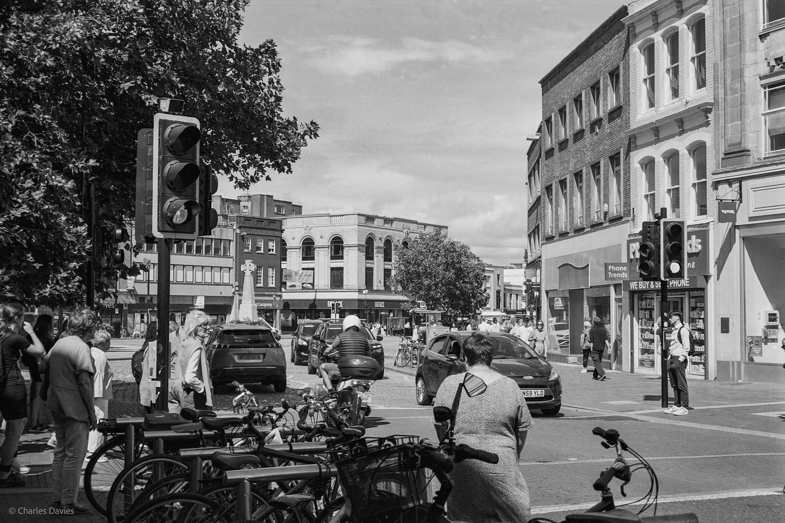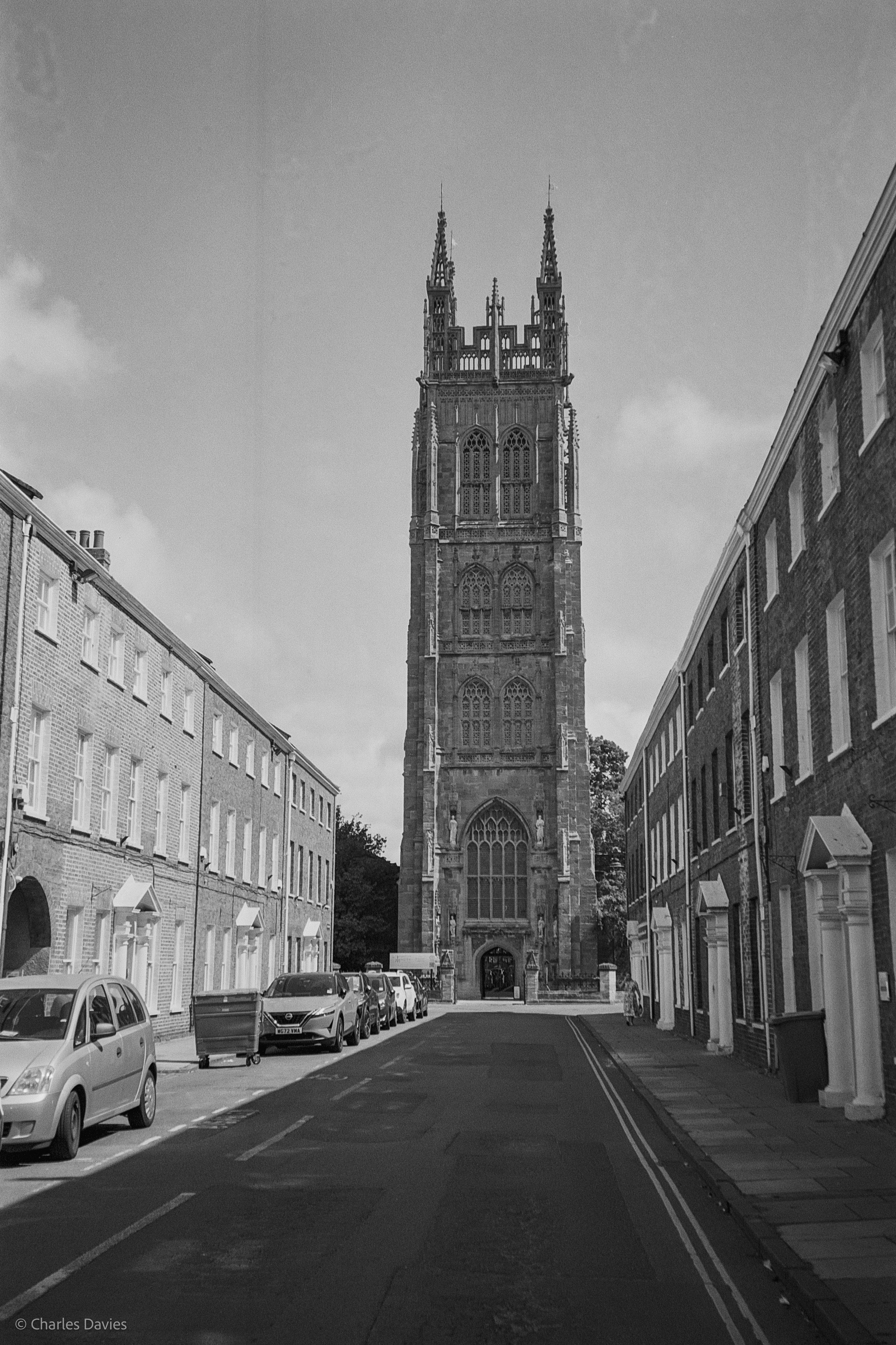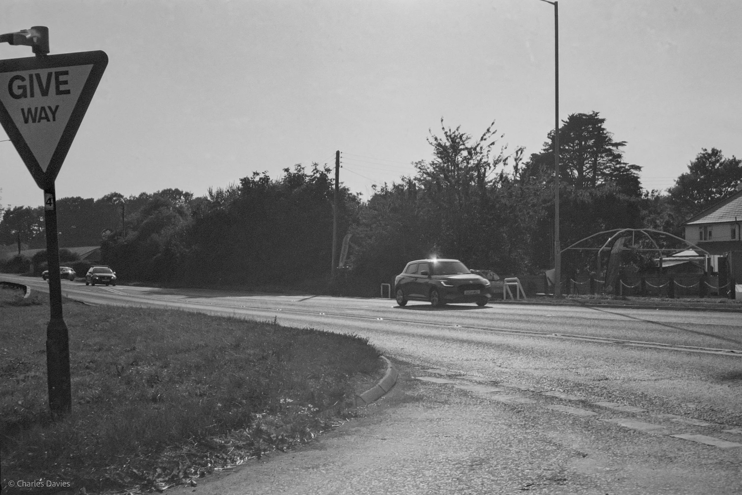 The images that you see above were shot coming on the way into Axminster, in chard, in Axminster and in Taunton. Let me say straight away that I really like these images. I find XP2 to be very weird and a very strange film stock, however it doesn’t mean I’m saying it’s bad. It’s strange in the sense that it’s B&W film but you develop it in colour chemistry and colour chemicals. It’s a C-41 film even though it’s B&W. True B&W film has something called silver halide crystals so the entire film is basically coated in silver. When the film is developed, the silver on the film forms metallic grains which create parts of the image and then the amount of silver left after the development will give you grayscale tones. This is how you get a true B&W image whereas chromogenic B&W films such as this one (Ilford XP2) is coated in dye as well as silver. During development the silver is then bleached away and replaced by the dye that forms the final image. This is my first time shooting XP2. While scanning these I was a bit nervous because my scanning software gave them quite a purple/pink hue to them and this is supposed to be B&W. However, while in the editing phase I turned them to black and white and they looked normal again. I am still unsure on whether I am supposed to do that or not because if everybody has to do that then you could just shoot colour film, then turn it B&W and then you never have to actually purchase black and white films again. I do understand that the purple hue is most likely from the film itself and not a scanning issue but I find it strange.Ilford XP2 is meant to be cheaper to develop and more cost effective because usually every lab can develop colour films and some labs charge more to develop B&W films. It is also easier when scanning when using something such as a flatbed scanner as flatbed scanners use something called Digital ICE to remove any external dust, hairs and scratches from the film.Digital ICE basically scans the film using infrared technology to be able to accurately get rid of the dust. This in turn, makes editing much more easier and faster because you don’t have to manually remove the blemishes yourself. The reason why Ilford XP2 is better in that regard is because normally the silver that is in true B&W films can mess up with the Digital ICE which means you can’t use Digital ICE while scanning your images. This can be very annoying. However, since films like Ilford is developed as if it were a colour film, the silver is bleached away, which means there is no more silver. This is great because you can use Digital ICE with this B&W film. Anyway, let’s move on for now and get onto more of my thoughts. I am very happy with these, I think they are wonderful. Some of the film has lot’s of contrast and the images are very sharp. I am very happy that my Espio was able to capture all of these details. I didn’t really have any focusing issues in many of the frames and the lens was very fast because I was in the car again for a few of these shots.One thing I will say is that there is some very weird artefacts that appear on some of the images. At first I thought they were newton rings (horrible little things that appear when reflective surfaces meet scanner glass. They usually have a rainbow colour to them) but I’m not so sure because it is impossible to acquire newton rings with my setup.It could either be a problem with development, a camera issue, or maybe even a film issue. I will have to test this by shooting this film stock in a separate camera and then a different B&W film stock in this camera. I think it may just be a camera issue though. I found the grain on these images to be quite minimal which is strange because XP2 is meant to be more grainy than other B&W films but I’m not complaining! All in all, I really like these images and I am very excited to shoot this film stock again.
